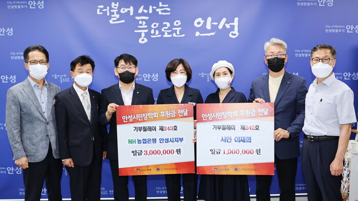 안성시는 23일 NH농협은행 안성시지부(지부장 손남태)가 300만원을, 이재희 시인이 100만원을 (재)안성시민장학회(이사장 박현철)에 기탁했다고 밝혔다.