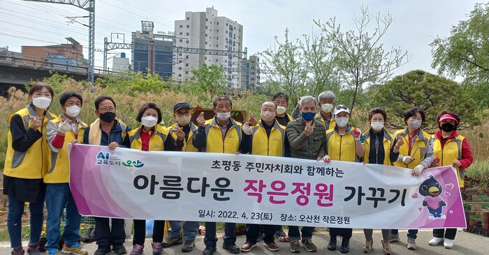 오산시 초평동 주민자치회(회장 이철경)는 지난 23일에 동직원, 관내 주민 등과 함께 2018년도에 조성한 오산천 철교우안에 위치한 작은정원(9~10호)에 꽃심기 행사를 진행하였다고 밝혔다.