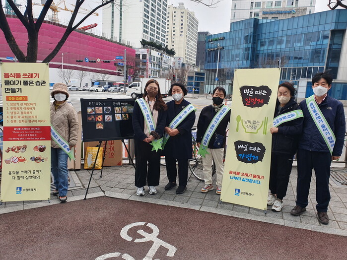 수원시가 7월까지 유동 인구가 많은 거리에서 ‘음식물쓰레기 줄이기 좋은 습관 만들기’ 캠페인을 전개한다.