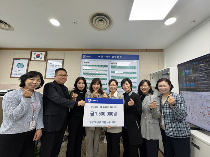 기부금은 한국여성지도자연합 수원시지회 회원들의 모금으로 마련했다. 경기도사회복지공동모금회 ‘2025년 영남 지역 산불 피해 지원 특별모금’을 통해 산불 피해 주민 지원, 지역 복구 등에 사용될 예정이다.