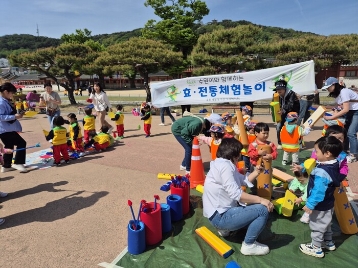 수원새빛형어린이집이 23~24일 행궁광장에서 ‘수원이와 함께하는 효·인성·전통 체험활동’을 했다.