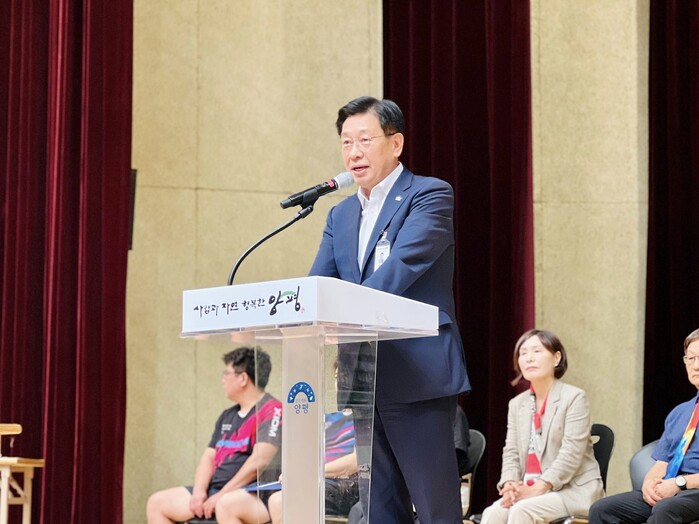 읍면에서 출전한 축구선수단의 경기에서 강상, 옥천,용문, 지평선수단이 4강에 올랐다. 준결과 결승 경기는 9월 14일 군민의날 진행된다. 오늘 승패를 떠나 페어플레이 정신을 보여주신 선수여러분께 존경의 박수를 보낸다고 말했다.