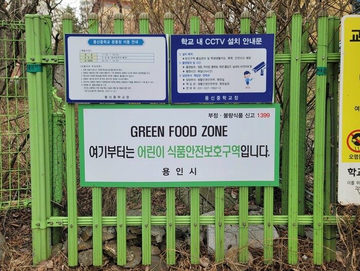 용인시가 어린이 식품안전보호구역(Green Food Zone) 내 알림 표지판을 정비한다고 6일 밝혔다.