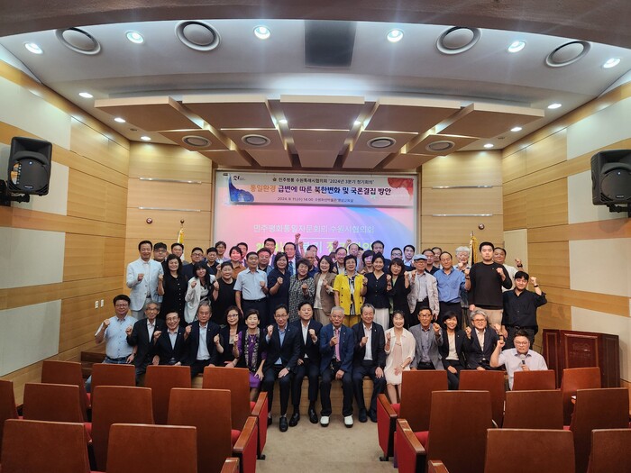 민주평화통일자문회의 수원특례시협의회(협의회장 이석하, 대행기관장 이재준 수원특례시장)는 9월 11일(수) 오후 2시 수원화성박물관 영상교육실에서 자문위원 등 70명이 참석한 가운데‘통일환경 급변에 따른 북한변화 및 국론결집 방안’을 주제로 2024년 3분기 정기회의를 개최했다.