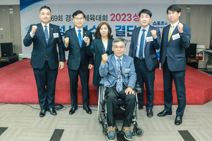 화성시의회는 28일 화성종합경기타운에서 열린 제69회 경기도체육대회 출전 결단식에 참석해 참가하는 선수들을 격려했다.