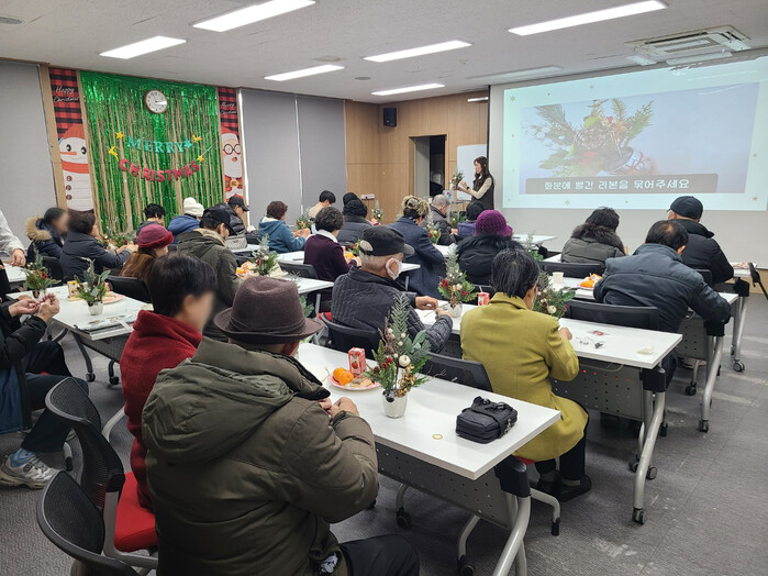 권선구치매안심센터에서 열린 행사에서 치매 고위험군, 치매 어르신·가족 등 50여 명은 미니 트리를 만들고 소감을 나눴다. 또 임경희 그데함 대표는 ‘그림책으로 배우는 삶과 죽음’을 주제로 강의했다.