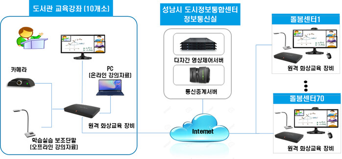 사진/성남지역 10곳 도서관-70곳 돌봄센터 간 원격 화상교육 시스템 개요도(성남시 제공)