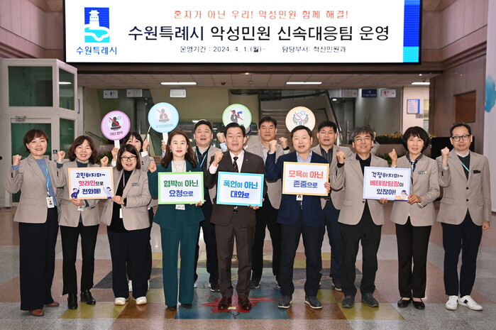 수원시(시장 이재준)가 ‘악성민원 신속대응팀’을 구성해 특이(악성)민원에 적극적으로 대응한다.