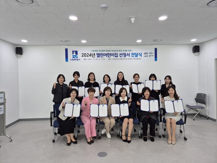 수원시농수산물도매시장에서 열린 선정서 전달식에서 2024년 신규 선정된 열린어린이집 12개소에 선정서를 전달했다. 각 구청에서 신규 선정한 열린어린이집 39개소는 각 구청에서 개별 전달한다.