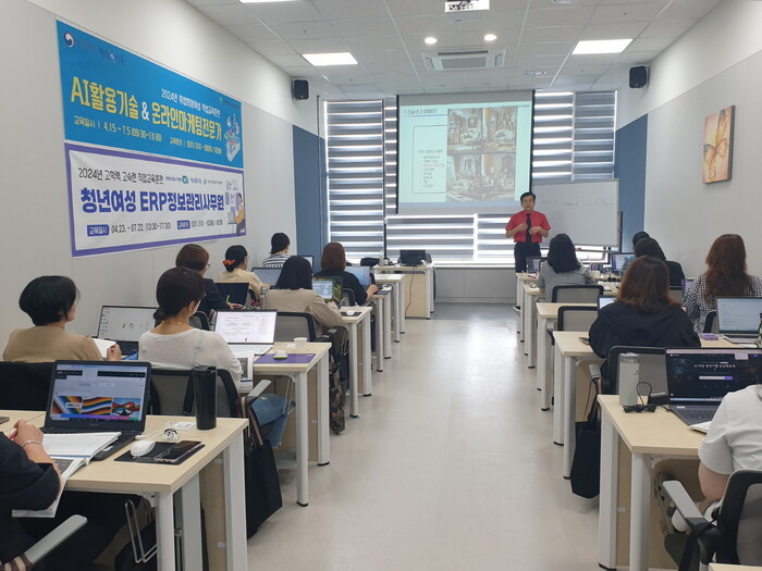 여성새로일하기지원본부(정왕동)에서는 ▲인공지능(AI) 활용기술 및 온라인마케팅전문가 ▲생성형인공지능(AI) 기반 사무혁신전문가 ▲퍼펙트 사무회계전문가 ▲현장맞춤 인지케어 실무자 ▲간호조무사 임상실무 마스터 ▲청년여성 이알피(ERP)정보관리사무원(39세 이하)과정을 운영한다.