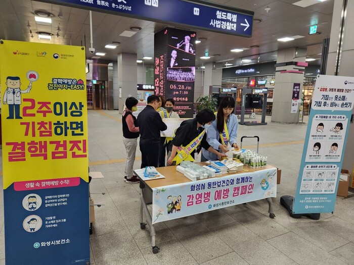 이날 캠페인에서 화성시동탄보건소는 ▲OX퀴즈를 통한 결핵 및 잠복결핵 차이에 대한 지식 습득 ▲만성 감염병 인식 개선을 위한 홍보자료 배부 ▲기침 예절 및 손 씻기 교육 등 감염병 예방 수칙 안내 등을 진행했다.