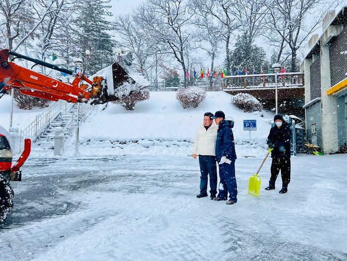 그러면서 현재까지 551명의 인력과 446대의 제설장비, 5,551톤의 제설제를 투입해 주요 도로와 고개 구간의 제설작업과 결빙 방지 작업을 진행 중이라며, 밤낮없이 애써주신 공직자분들, 현장 근로자들, 자원봉사자 여러분께 깊이 감사드린다고 말했다.