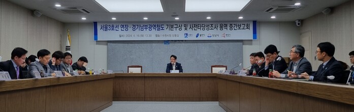 화성시(시장 정명근)가 16일 수원시청에서 열린 ‘서울3호선 연장・경기남부광역철도 기본구상 및 사전타당성조사 용역’중간보고회에 참석해 그간 진행된 용역 결과 및 향후계획에 대해 논의했다.