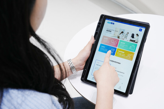 사진/새빛톡톡 앱을 태블릿 PC로 이용하는 모습.(사진제공=수원시)