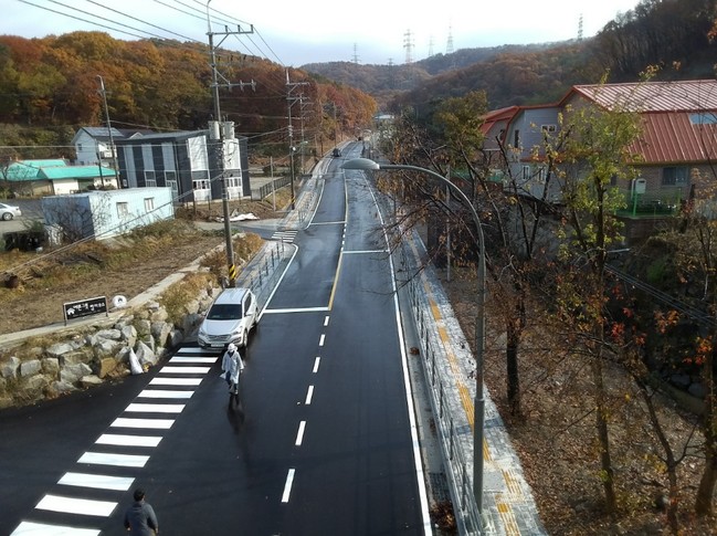 이곳 기존 진입로는 보도가 별도로 없고 폭도 6~8m에 불과한데다 선형이 구불구불해 대형차량의 교행이 어려운 것은 물론이고 주민들도 통행에 불편을 겪어 왔다.