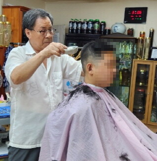 사진/안양승이용원에서 군 장병이 이발을 하고 있다.(사진제공=수원시)