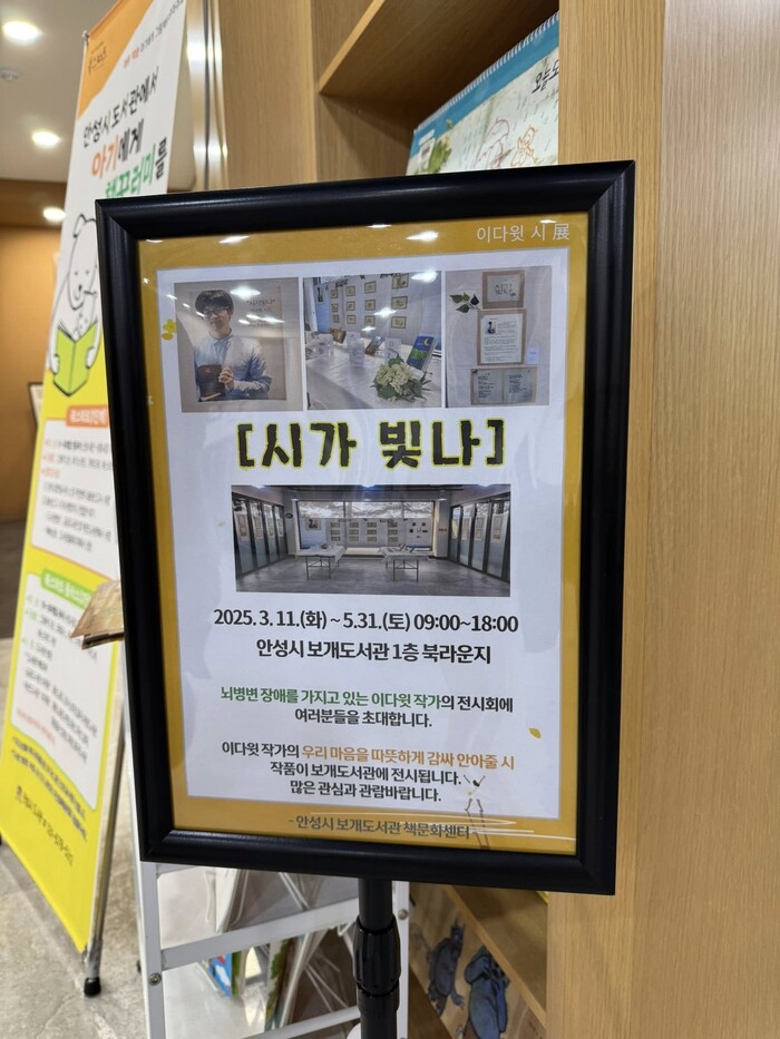 이어 오늘 도서관에서 책을 읽고 나오다 우연히 1층 로비에서 이다윗시인의 전시회를 보았다며, 다윗군은 책읽기와 시쓰기를 좋아하는 청소년이다. 다윗군의 시를 읽고 있으면 웃음이 절로 난다고 말했다.