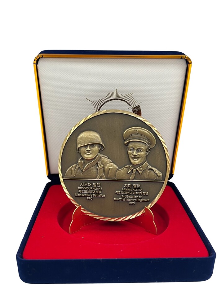 올해 제작한 ‘기념코인’에는 참전용사의 성(姓) 알파벳 순에 따라 선정된 시모어 알빈(Seymour Albin, 당시 미 52포병대대 일병)과 지미 앨런(Jimmie Allen, 당시 미 21보병연대 제1대대 일병)의 모습, 이름, 당시 소속 및 계급이 새겨져 있다.