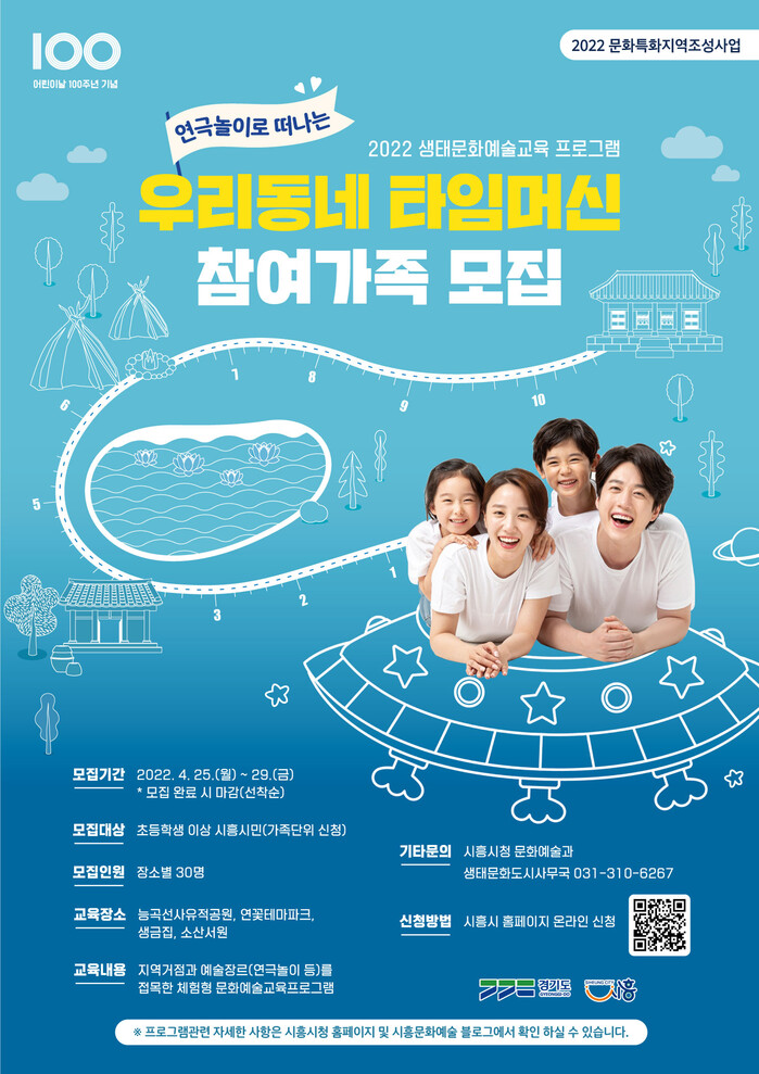 한편, ‘연극놀이로 떠나는 <우리동네 타임머신>’은 어린이날 100주년 기념행사로 진행되는 <시흥 어린이 문화의 달 통합프로그램> 중 하나다.