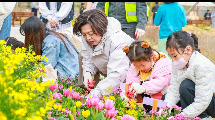 신계용 과천시장, “과천 지식정보타운 근린공원4에 꽃밭 생겨, 아이들과 함께 꽃 심었다”