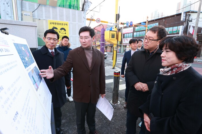 이 시장은 이날 신갈 시외버스 스마트정류소 준공 현장을 둘러보고 곧바로 신갈초등학교를 방문해 학교 울타리 역할을 하는 방음벽 교체 상황을 확인했다.