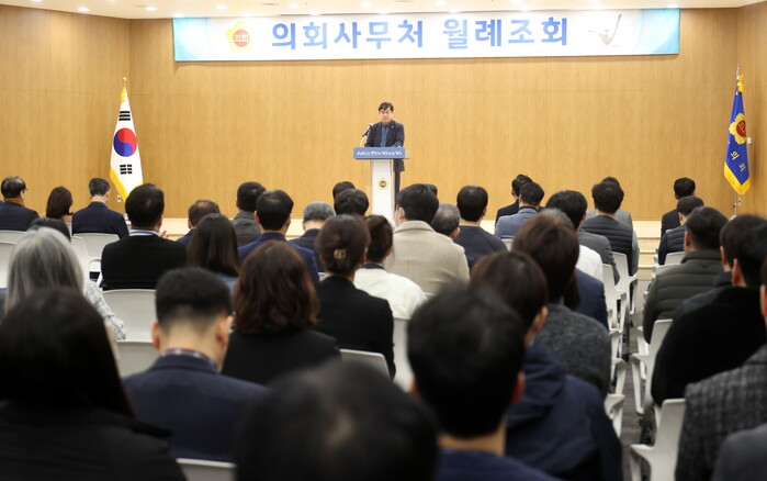 이 자리에서 김종석 사무처장은 월례조회 변경의 취지 및 개선된 회의 운영 방식 등에 대한 염종현 의장의 의견을 전달했다.