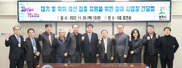 전 군수는 이날 특히 광주시에 있는 대기배출시설 사업장 총 972개소 중 악취 문제를 자주 유발하는 인쇄사업장(그라비아 방식 인쇄, 코팅)이 155개소나 있다며, 특히, 초월·곤지암·도척 권역에 77%에 달하는 119개소가 집중되어 있어 악취로 인한 불편 민원이 자주 제기되고 기업 활동도 제약받는 실정에 있다고 밝혔다.