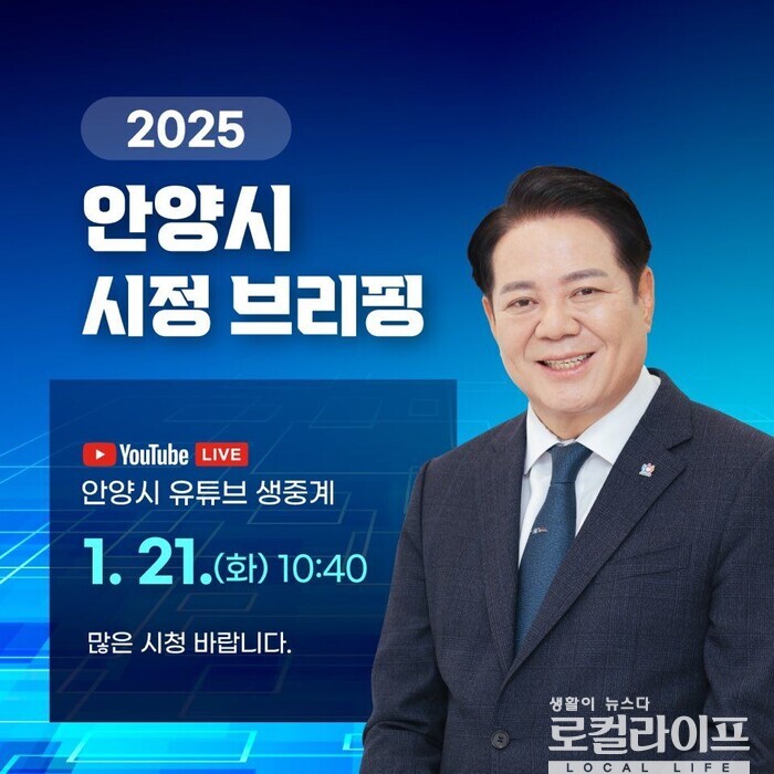이번 시정 브리핑은 안양시 유튜브(https://buly.kr/HSWaoe3)를 통해 생중계될 예정이다.