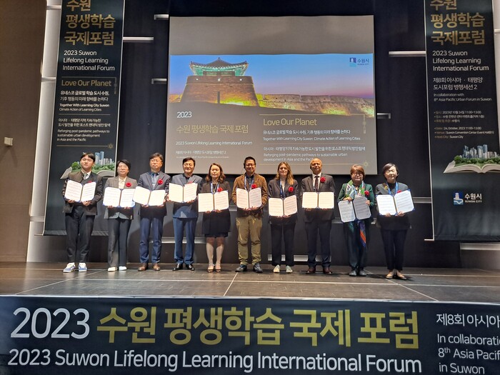 수원시가 24일 수원컨벤션센터에서 ‘유네스코 글로벌 학습 도시 수원, 기후 행동의 미래 향배를 논하다’를 주제로 ‘2023 수원평생학습국제포럼’을 열었다.