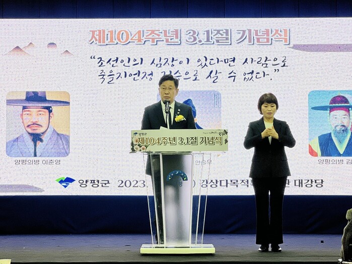 아울러 전 군수는 오늘 3.1절 기념식을 맞이하여 멋진 공연으로 함께해주신 양평문화여성합창단, 양평연극협회와 배우분들, 그리고 양평청소년예술단 여러분께 감사드린다고 말했다.