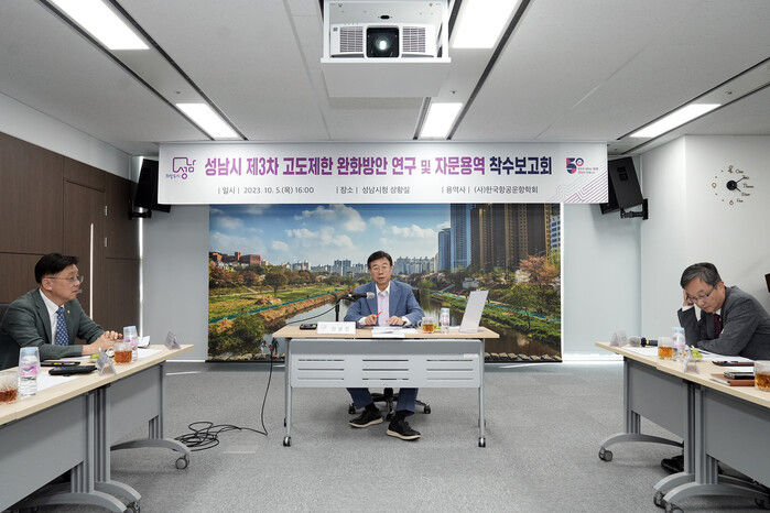 성남시(시장 신상진)가 성남시민들의 최대 숙원사업인 서울공항(수정구)인근 건축물 고도제한을 완화하기 위한‘3차 고도제한 완화 기반 구축 사업’연구용역 착수보고회를5일 개최했다.