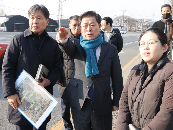 이번 방문은 2024년 시민과의 대화에서 제기된 건의사항 중 현장 확인이 필요한 사안으로, 학온동 지역의 서독로와 광명로 일부에서 인도 부재로 인한 보행자의 안전 우려에 대한 민원 현장 확인을 위한 것이다.