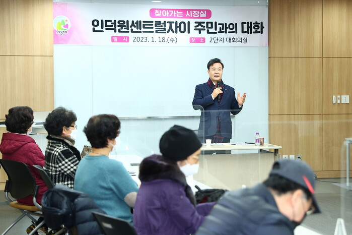 김성제 의왕시장이 18일 인덕원센트럴자이 아파트를 찾아 주민들과 대화의 시간을 가졌다.