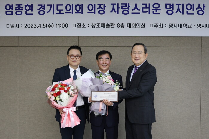 염종현 경기도의회 의장이 의정을 성공적으로 이끌어온 공로로 모교인 명지대학교가 수여하는 ‘자랑스러운 명지인상’을 수상했다.