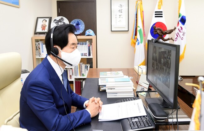 PC영상으로 개최한 이날 회의는 시장, 부시장, 국‧단‧소장 및 권역국장이 참여해 국별 주요 현안 사항에 대하여 보고하고 논의하였으며, 부서장과 직원은 내부행정시스템을 통해 중계방송을 시청했다.