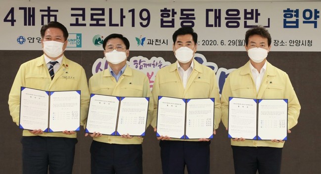 안양시는 안양·군포·의왕·과천 4개 시 단체장이 29일 안양시청에서 코로나19 공동대응을 위한 협약을 체결했다고 밝혔다.