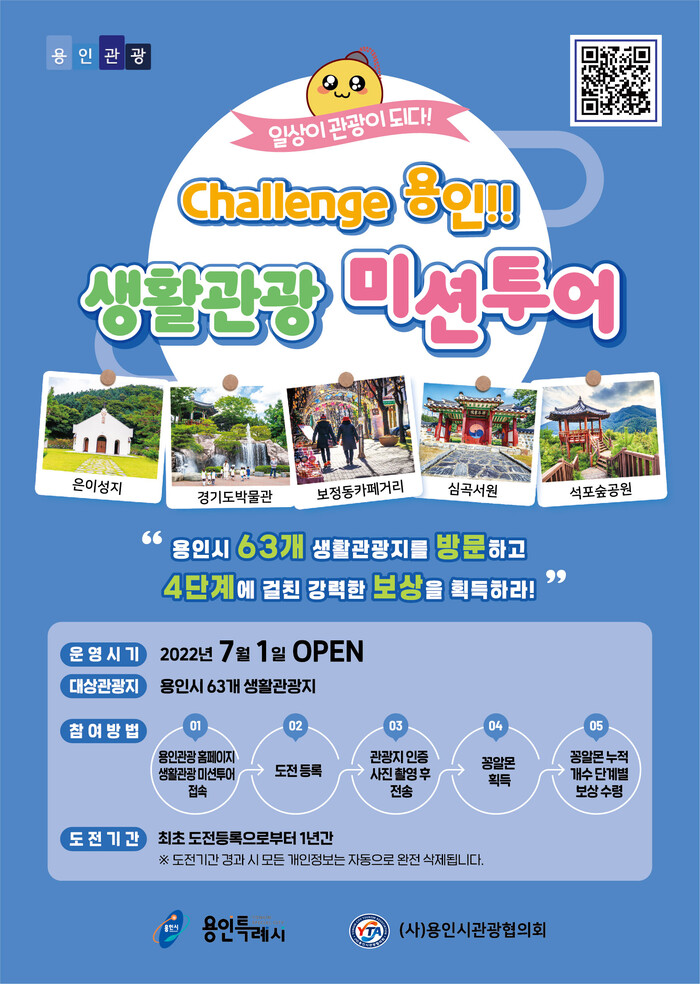 이번 이벤트는 일상 속에서 쉽게 방문할 수 있는 생활관광지를 알리기 위해 (사)용인시관광협의회와 함께 추진한다.