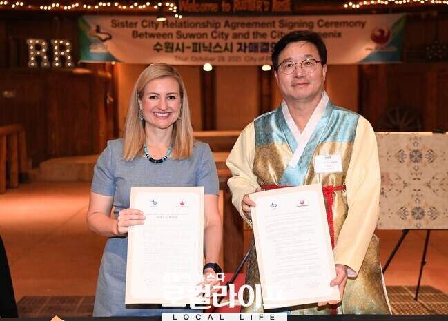 [수원=로컬라이프] 송준형 기자 = 염태영 수원시장이 수원시와 미국 피닉스시 간 자매도시 협약 소식을 전했다.