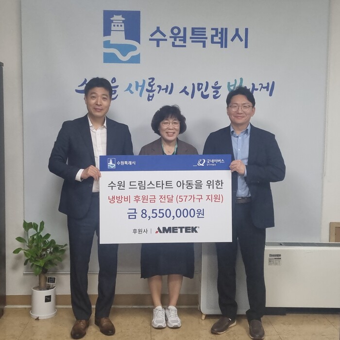㈜아미텍 코리아가 굿네이버스 경기지역본부를 통해 수원시 드림스타트 아동 가구에 냉방비 855만 원을 기부했다.