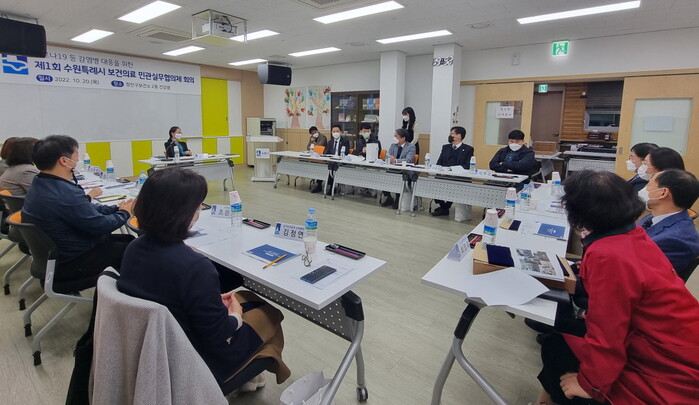 간담회에는 4개 구 보건소 공직자를 비롯해 수원소방서·수원남부소방서, 수원지역 의약단체, 종합병원 감염내과 교수 등 관계자 등이 참석했다.