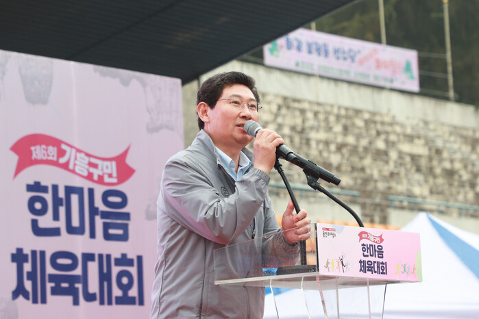 사진/이상일 용인특례시장이 29일 기흥구민 한마음체육대회에서 인사말을 하고 있다(사진제공=용인시)