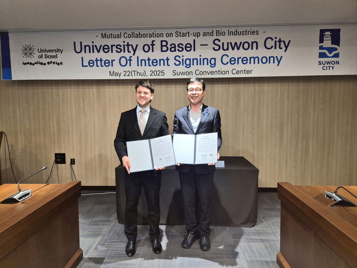 이날 협력의향서 체결식에는 장수석 수원시 기업유치단장, 크리스티안 엘리아스 슈나이더 바젤대학교 이노베이션실 센터장 등이 참석했다.