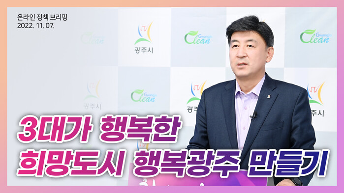 광주시는 7일 ‘3대가 행복한 희망도시 행복광주’를 만들기 위한 복지‧교육 분야 온라인 시정 브리핑을 발표했다.