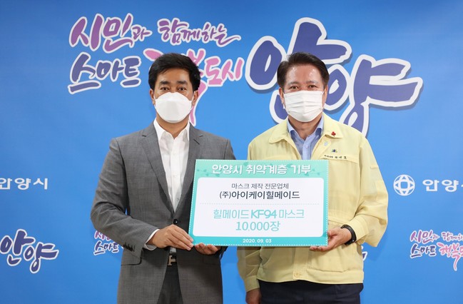 [로컬라이프] 마스크 전문 기업 ‘아이케이 힐메이드’가 9월 3일 안양시에 코로나 19에 상대적으로 노출되기 쉬운 취약계층을 위한 힐메이드 보건용 마스크 1만장을 기부했다.