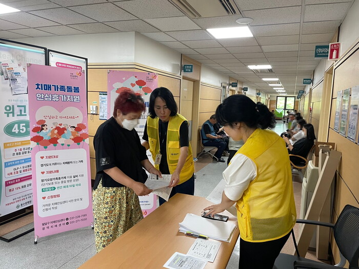 사진/치매안심센터 직원이 의료시설에서 치매 사업을 안내하고 있다.(사진제공=수원시)