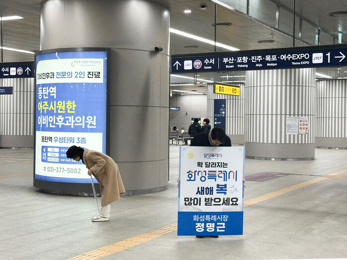 [화성=로컬라이프] 송준형 기자 = 정명근 화성시장은 3일 아침, 동탄역에서 출근길 시민 여러분께 인사를 드렸다.