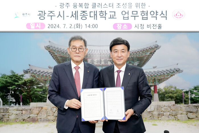 경기 광주시는 2일 시청 6층 비전홀에서 세종대학교와 융복합 클러스터 조성사업을 위한 업무협약(MOU)을 체결했다.