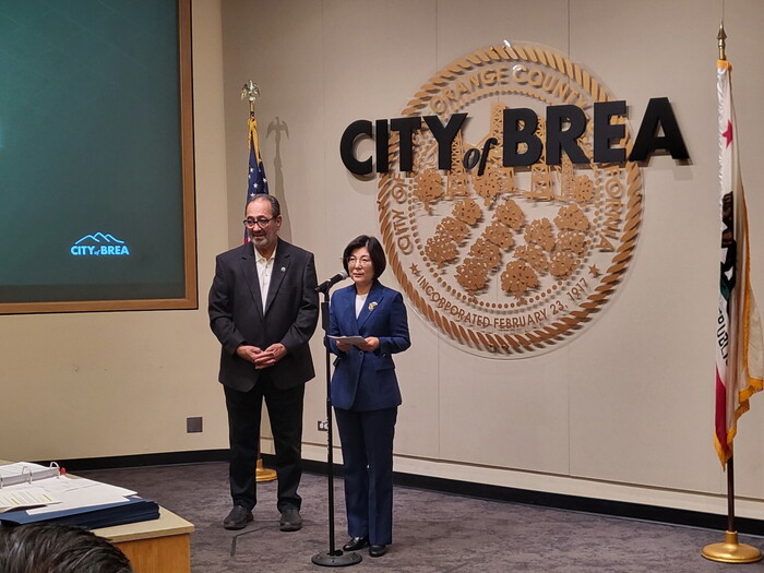 김보라 시장과 안성시의회 이중섭 운영위원장, 이관실 시의원은 지난 8월 15일 19시에 개최된 미국 브레아시 의회 정례회 초청 연설을 통해 자매도시 시민들과 공직자들에게 우정의 메시지를 전했다.