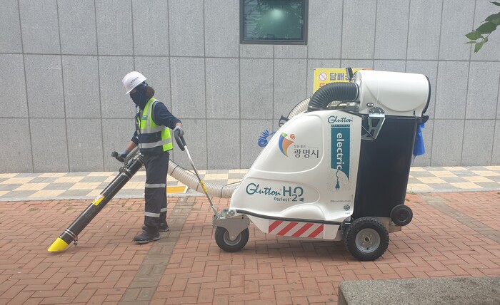 ‘글루통’은 고성능 배터리를 탑재한 전기 충전 방식으로 탄소배출 없이 쓰레기를 효과적으로 빨아들이는 진공 청소 장비이며, 경기도에서는 광명시가 최초 도입한다.