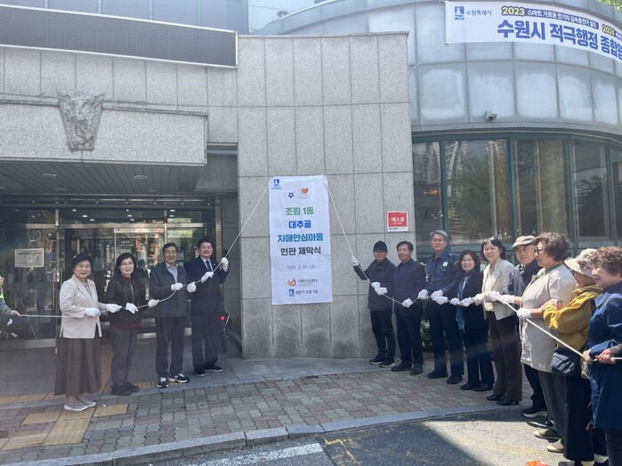 25일 조원1동 행정복지센터에서 열린 현판 제막식에는 김옥영 조원1동장, 수원시의회 의원, 치매안심마을 운영위원, 조원1동 주민 등 30여 명이 참석했다.